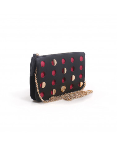 Pochette con pois traforati, chiusura a zip e tracolla