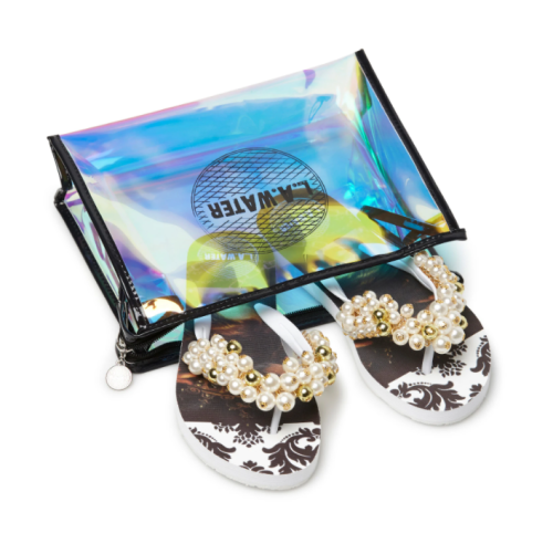 Packaging: Le ciabattine vengono vendute nella pratica pochette in pvc mermaid con logo L.A. WATER. Accessorio glam da indossare al mare o in città.